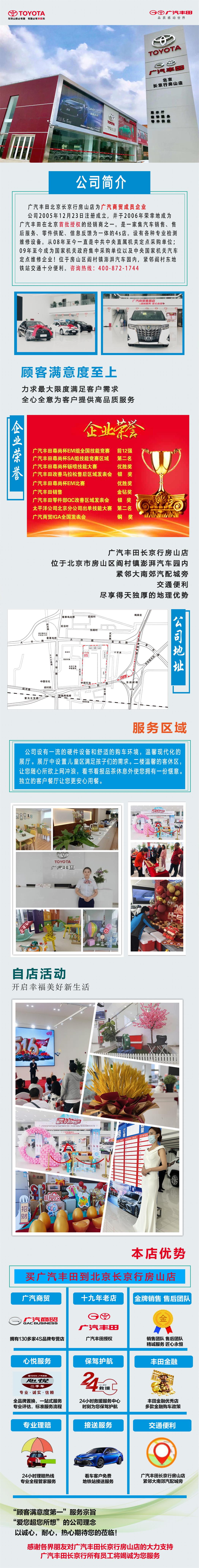 北京长京行汽车销售服务有限公司是广汽商贸成员企业,广汽丰田汽车有限公司授权的汽车销售、售后服务、零配件供应、信息反馈为一体的4S店。位于房山区阎村镇澎湃汽车园内。咨询热线010-83518889